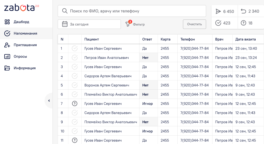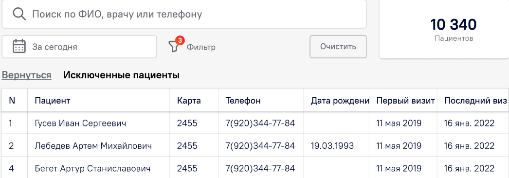 Разработали отдельный модуль "Записи пациентов", в котором вы сможете отслеживать все подтвержденные приемы