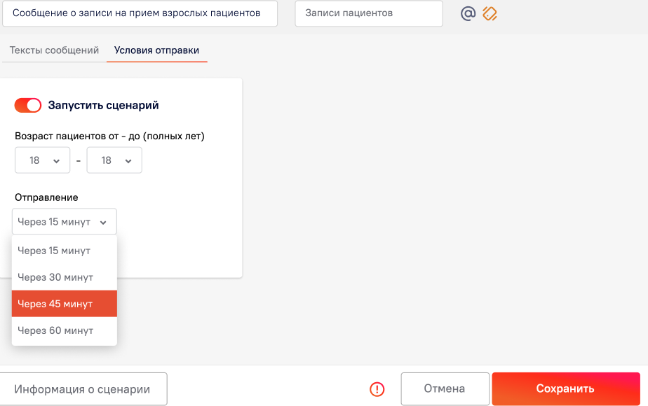 Тонкая настройка сценариев: выбор времени, частности и условий отправки.